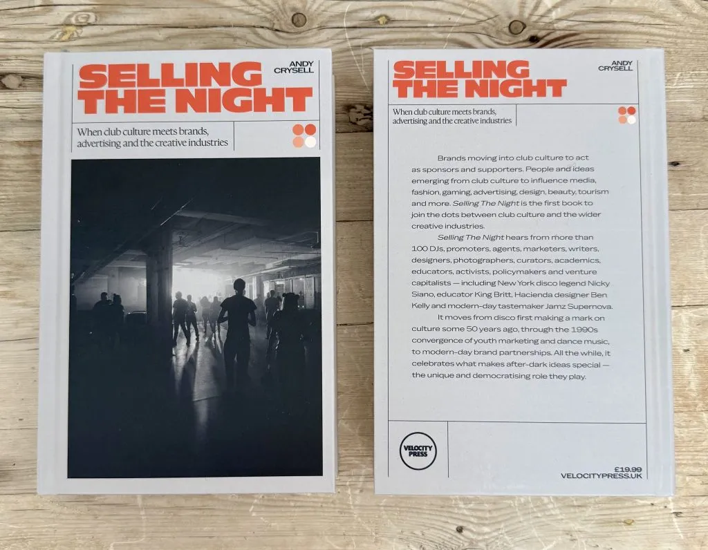 For Selling The Night (Andyās third book, having wrote Crowdās How We Work With Culture and also co-authored one about Ibiza way back in the 1990s), he spent last year interviewing more than 100 DJs, promoters, marketers, academics, activists, archivists, policymakers, photographers, writers and designers, urban planners and venture capitalists ā and reading countless more stuff ā to bring together a forensic portrait of both how brands stake a space on the dancefloor, and how club culture takes a place in the wider creative industries.