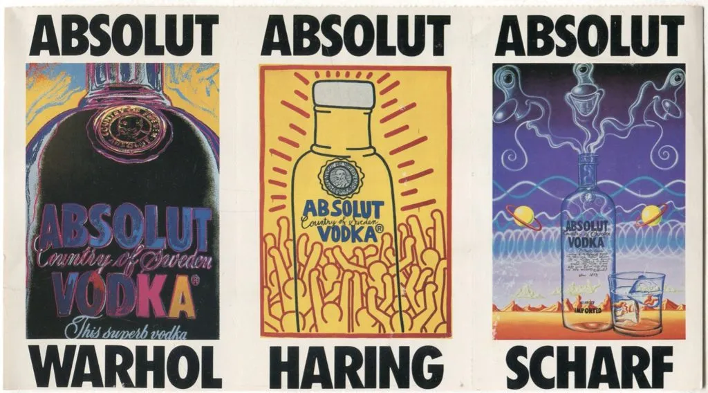 Campaigns from Fiorucciās disco years, including singer and drag queen Divine. Meanwhile, NYC clubbers would plaster the walls of their loft spaces and walk ups with Absolut vodka adverts by artists like Andy Warhol, Keith Waring (above) and Kenny Scharf.